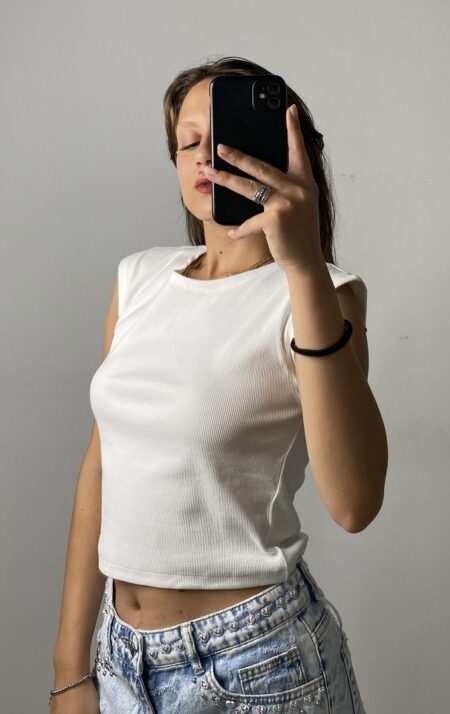 Top giro manica bianco