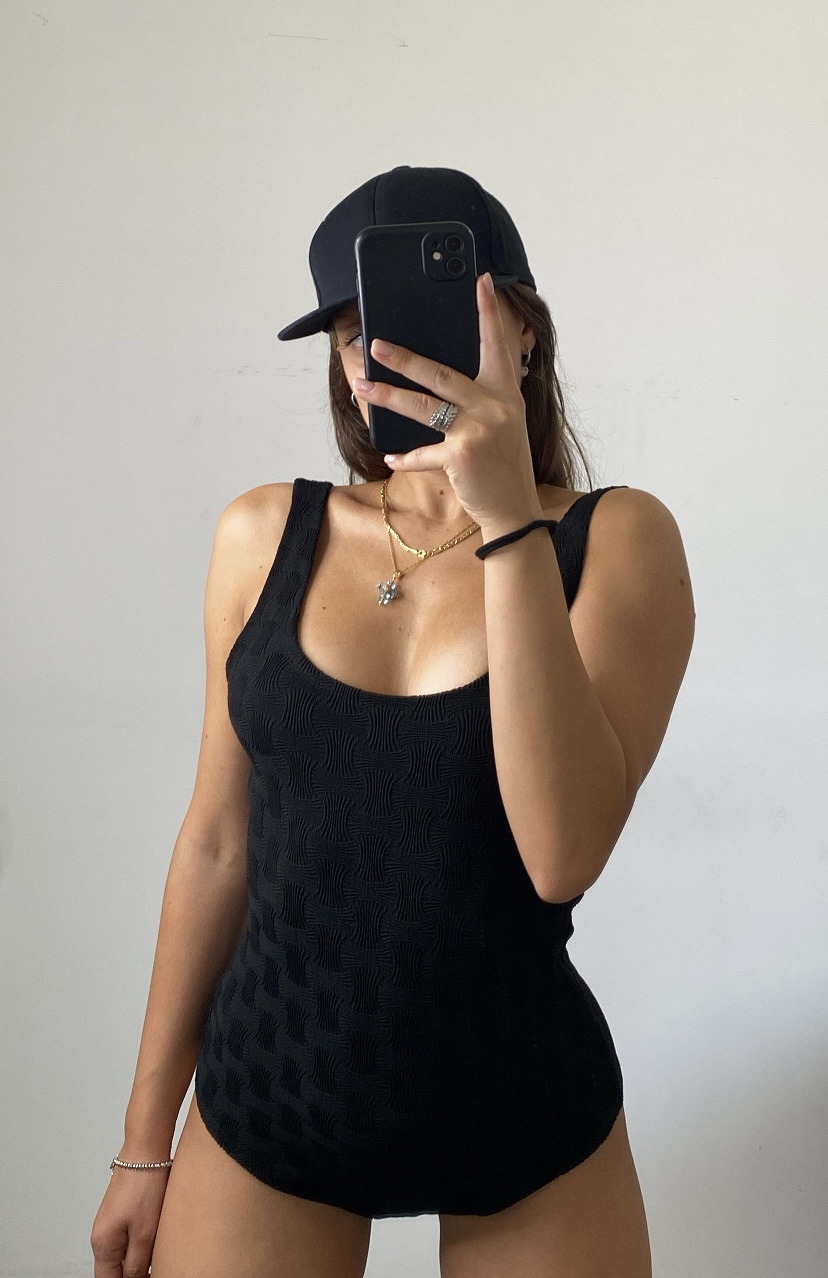 Body a bretelle con ricami di tessuto stesso, elastico
