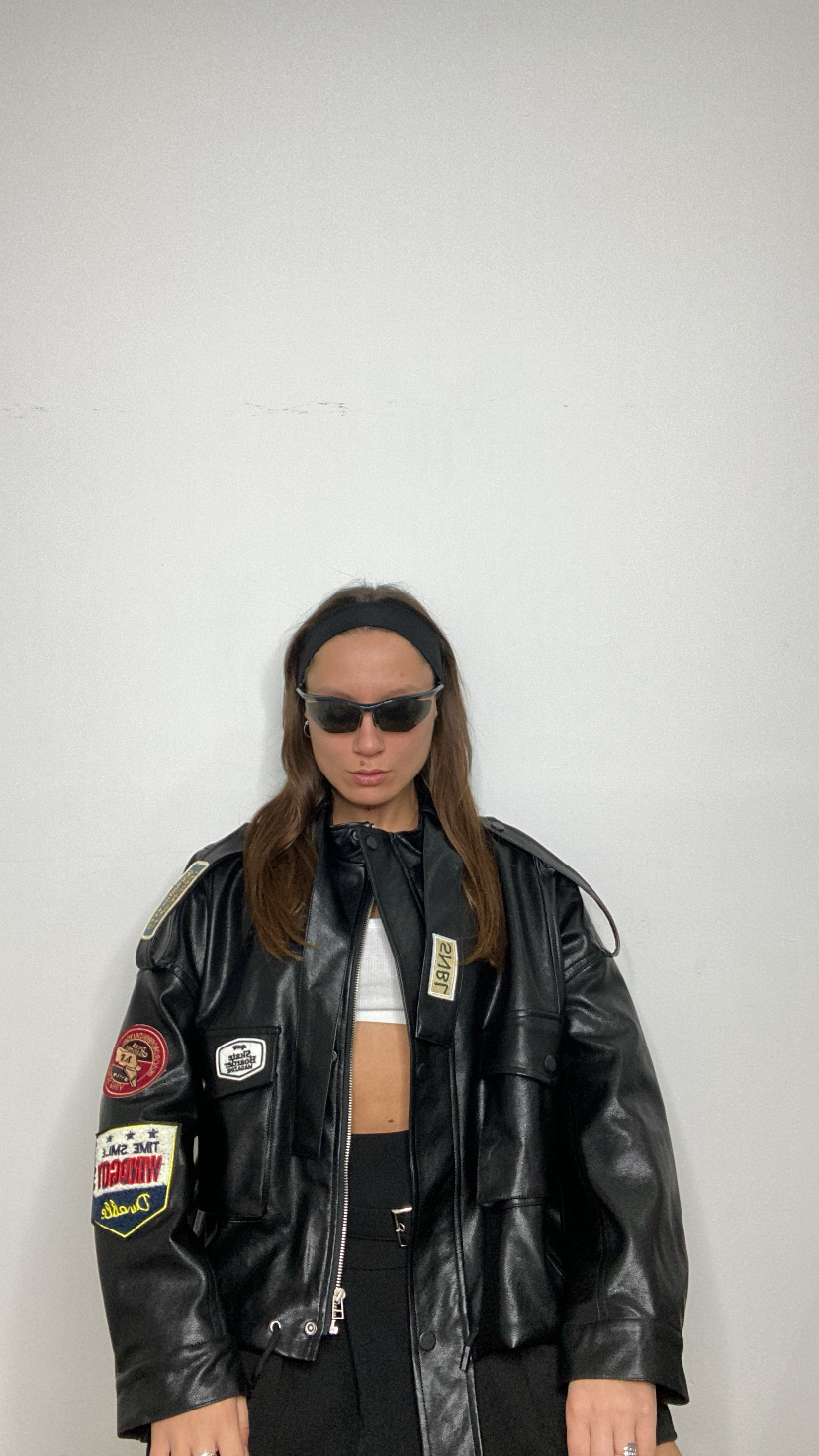 Bomber in ecopelle effetto vintage con patch chiusura con zip frontale tasche laterali con patta chiusura a clip over