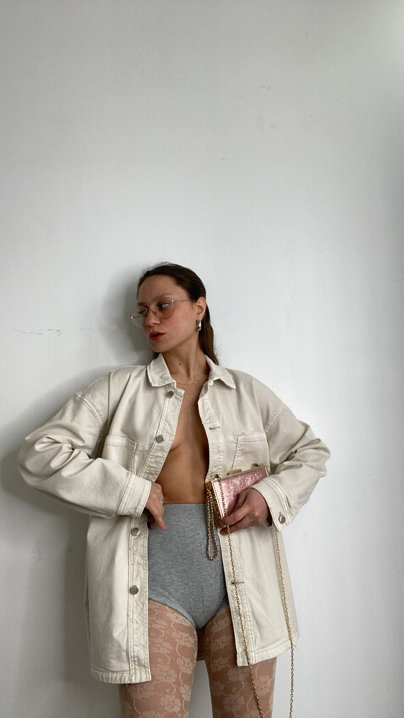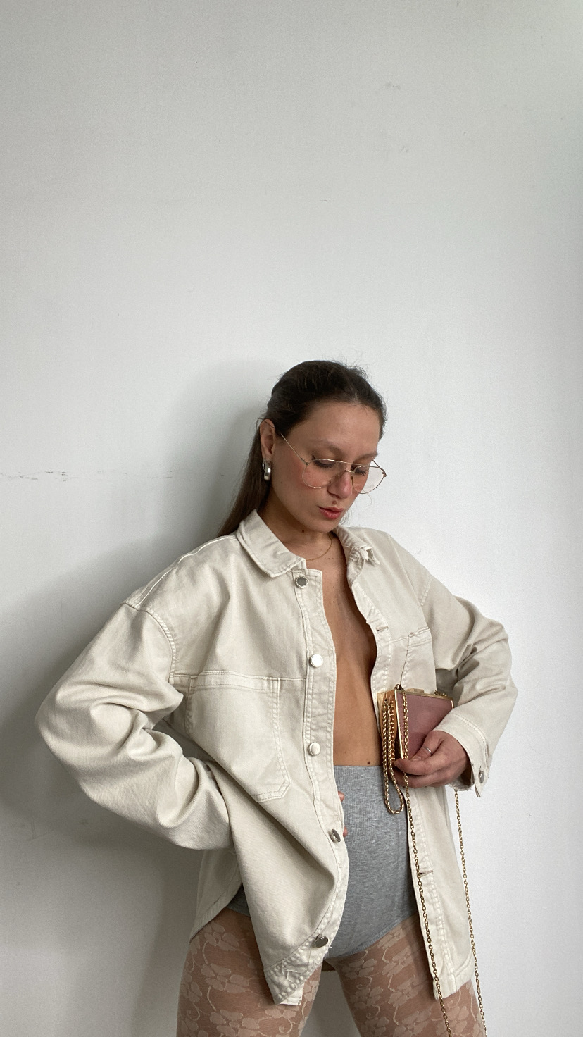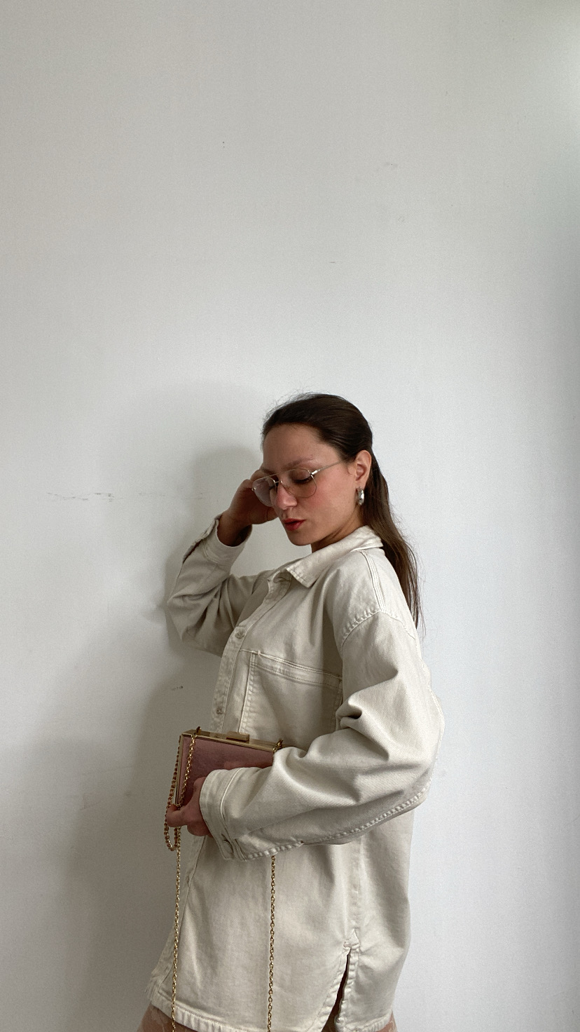 Camicia in jeans lavaggio chiaro bottoni in metallo avanti bottone sul fondo della manica oversize