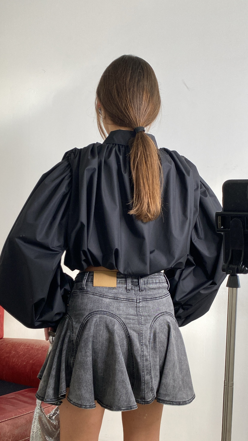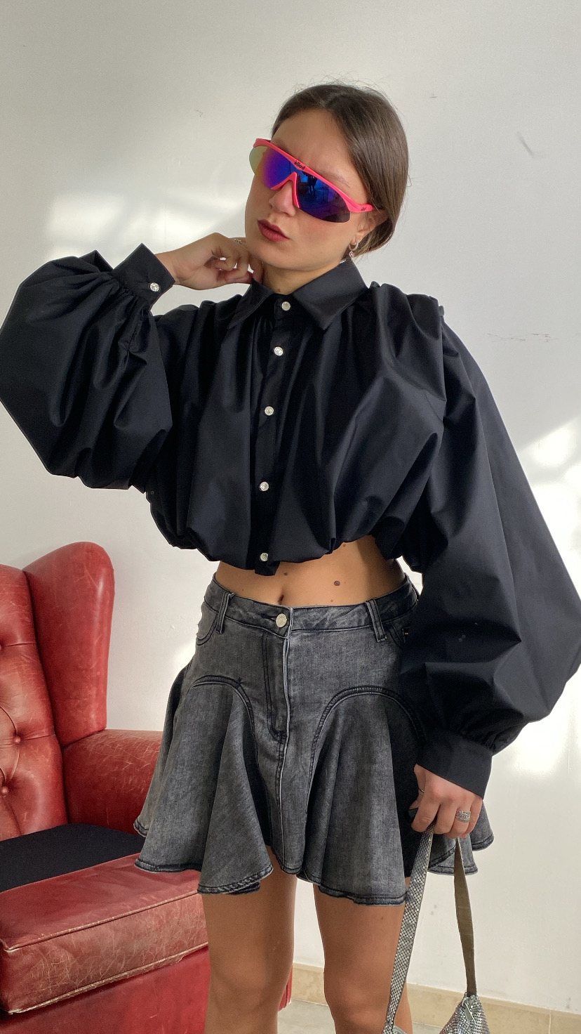 Camicia in cotone a palloncino corta con maniche ampie elastico sul fondo bottoncini avanti e sul fondo del polsino argento 36/44 italiana