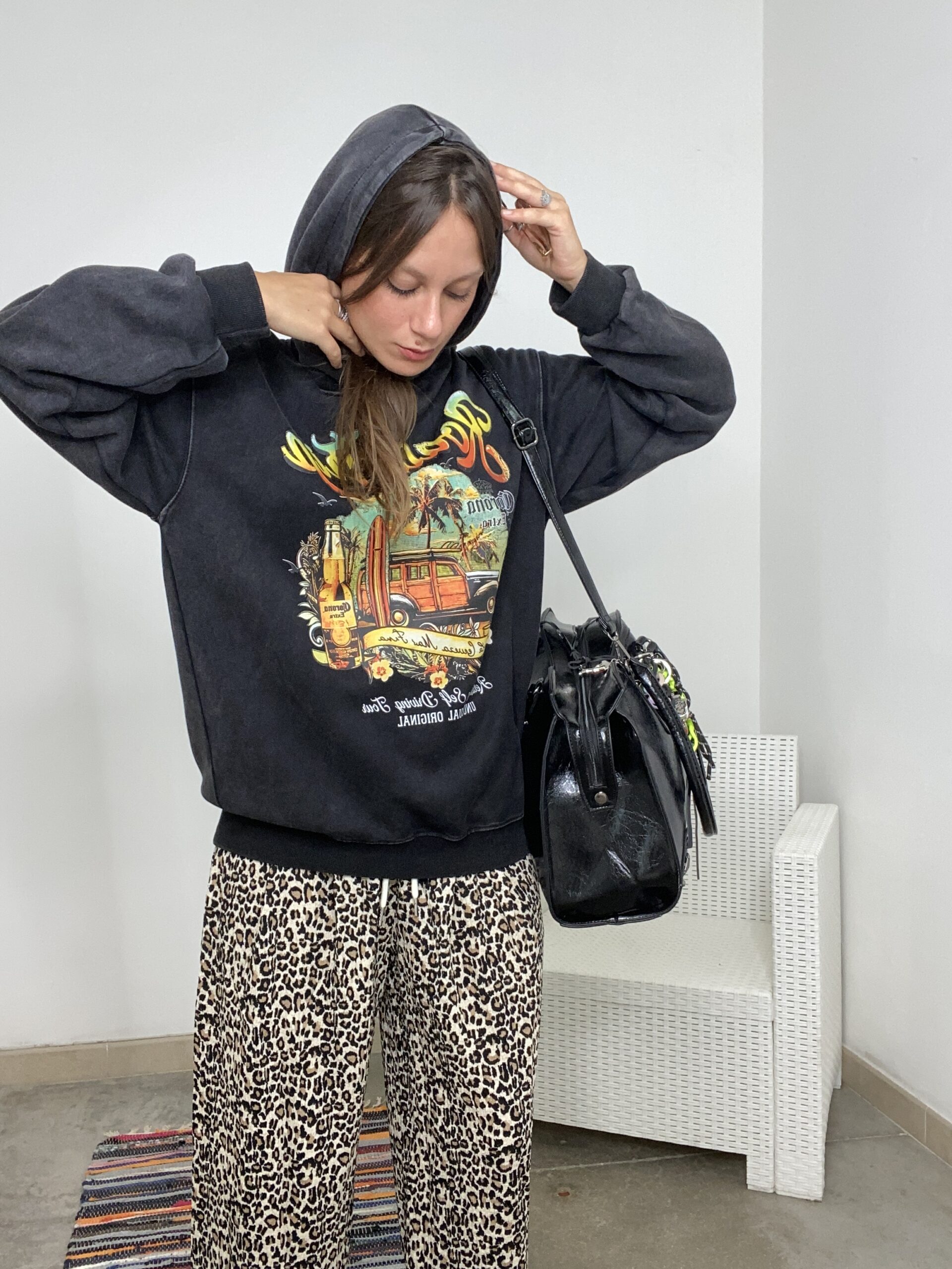 Felpa sgarzata con cappuccio con stampa sul danti