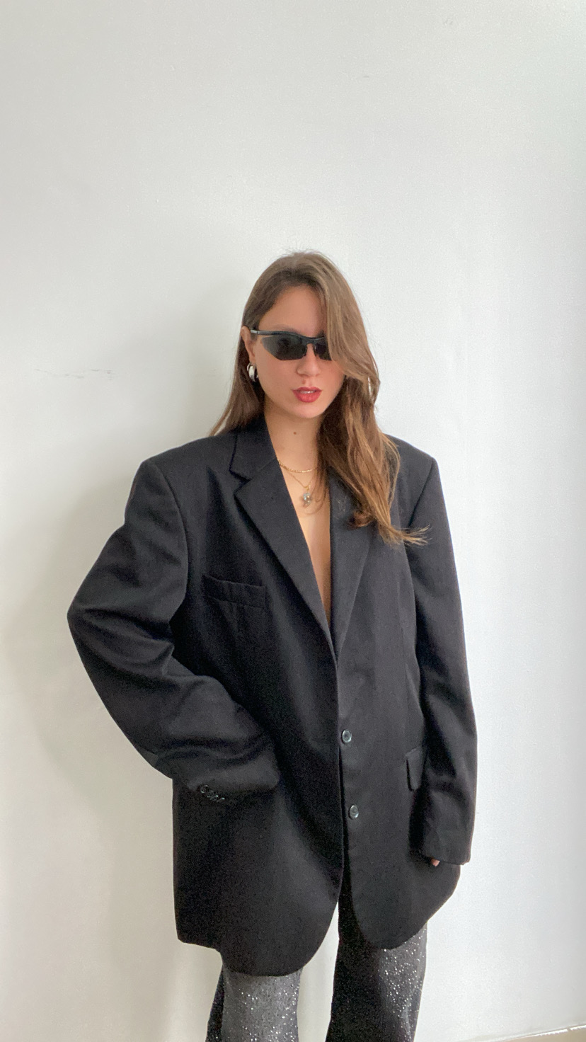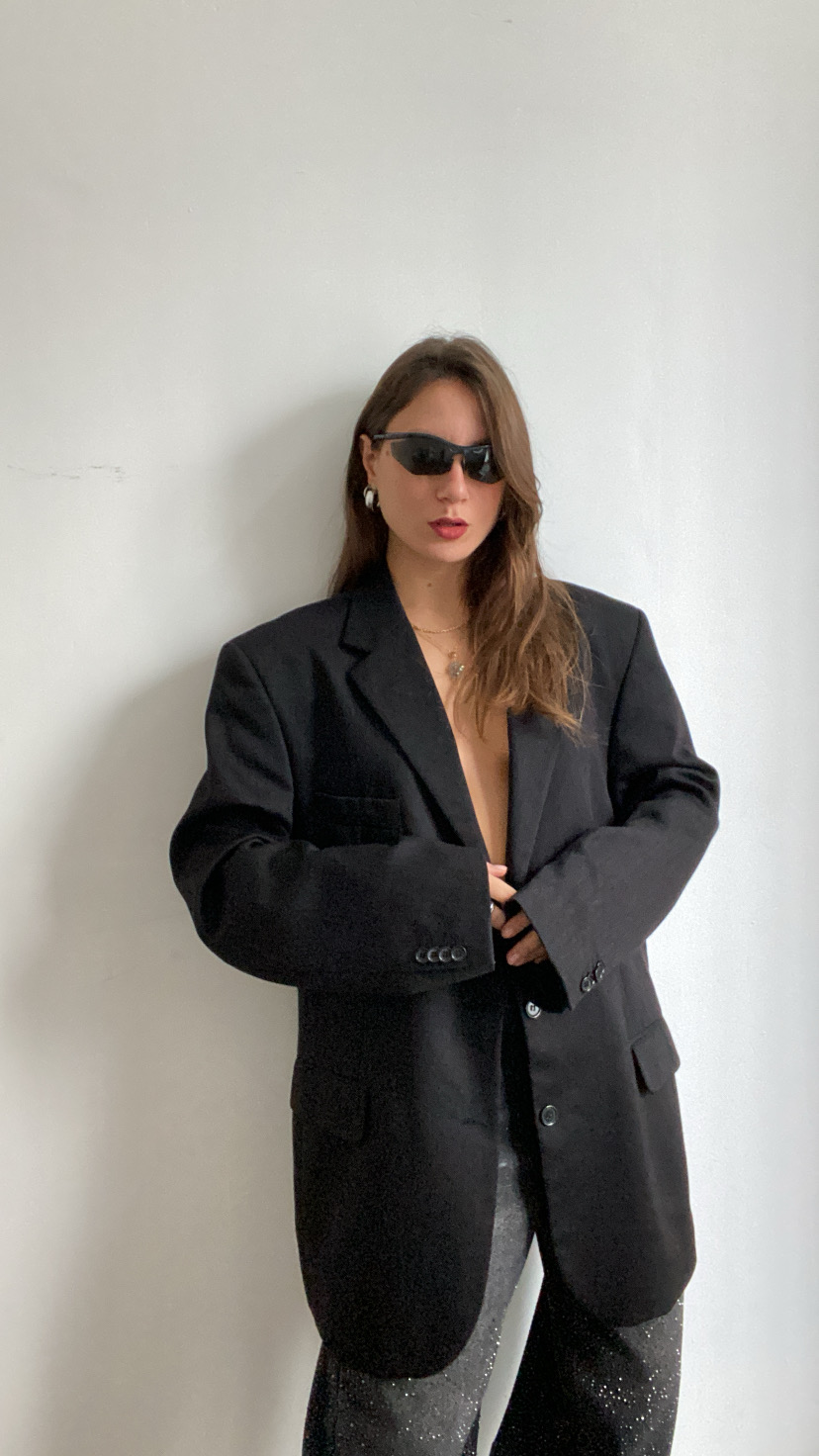 Giacca vintage oversize nera effetto jeans con mega spalline sugli omeri bottoni avanti tasche laterali con patta 36/48