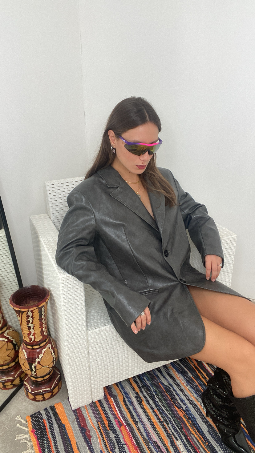 Giacca in ecopelle con spalline tasche laterali veste regolare