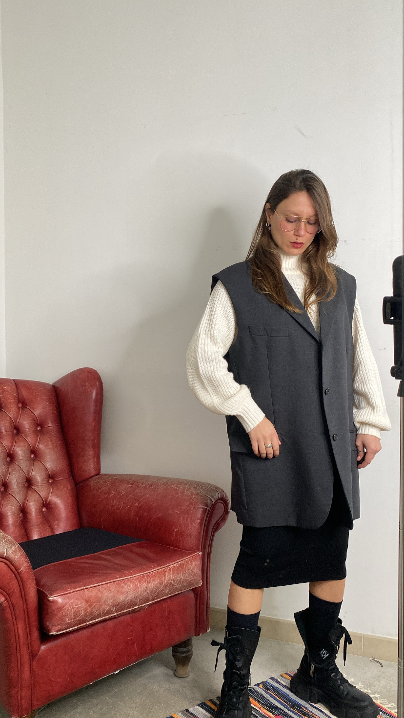 Gilet sartoriale vintage con pitturazione a mano sul retro oversize 36/46 italiana