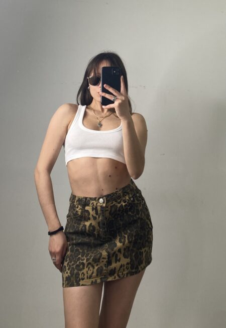 Gonna in jeans tela leggera a balze effetto consumata cintura in vita foderata all’interno da short zip sul retro visibile 36/46 italiana