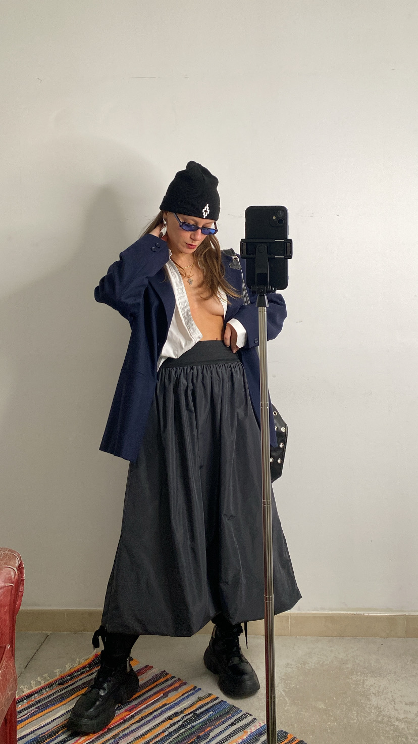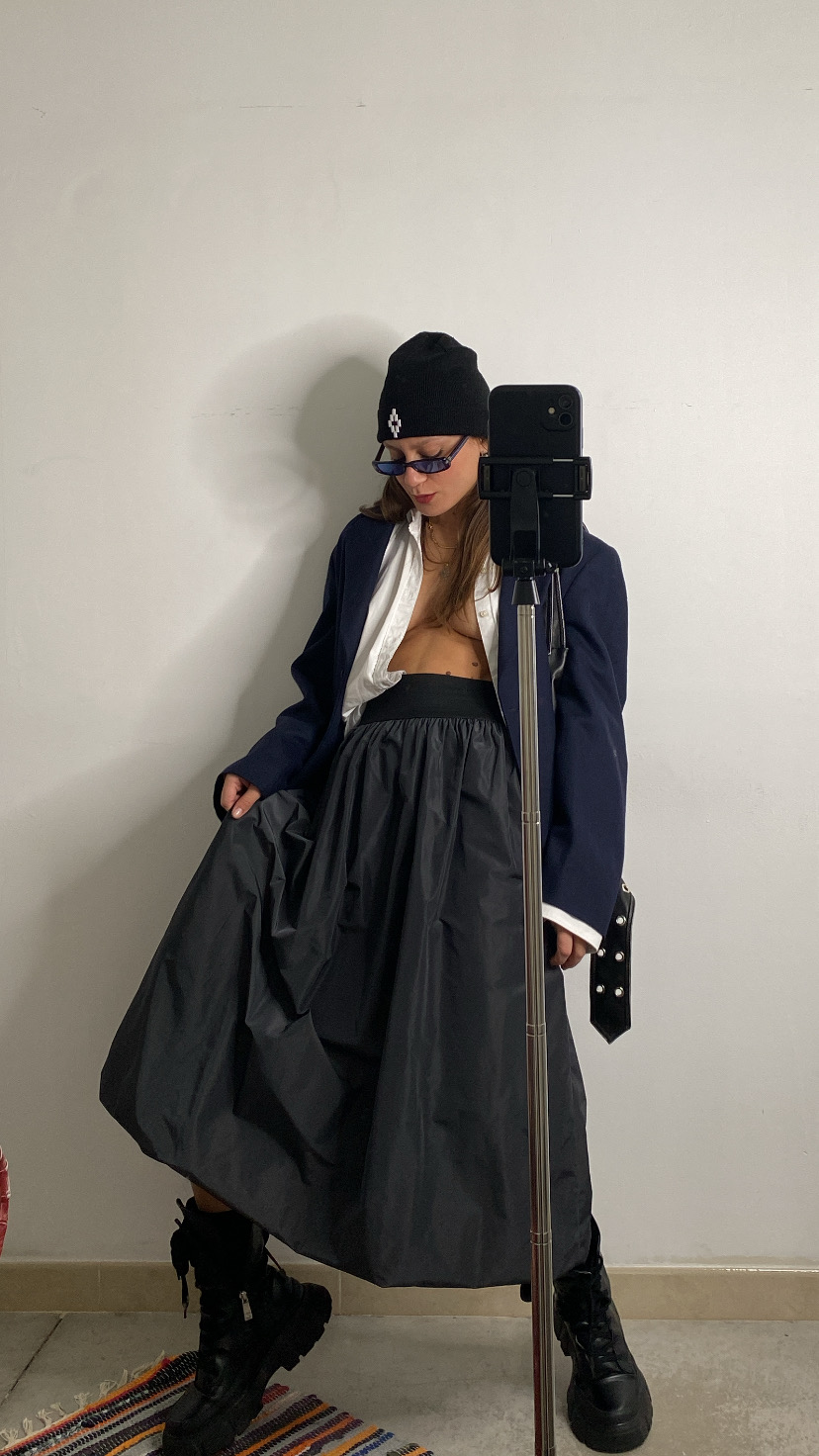 Gonna lunga grigia in tessuto tecnico felpata all’interno con elastico in vita 36/46