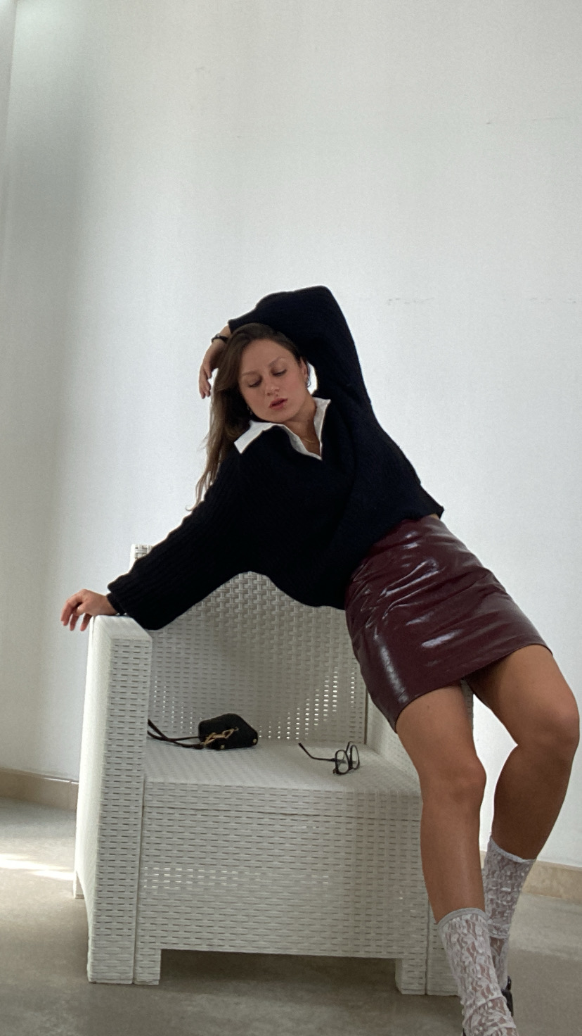 Gonna aderente a vita alta in vernice foderata da shorts al suo interno zip sul retro