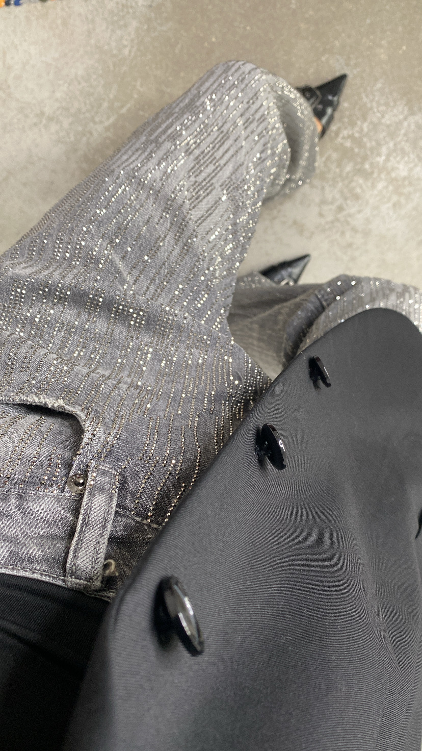 Jeans in lavaggio grigio a vita media tela fissa gamba dritta tempestato da brillantini