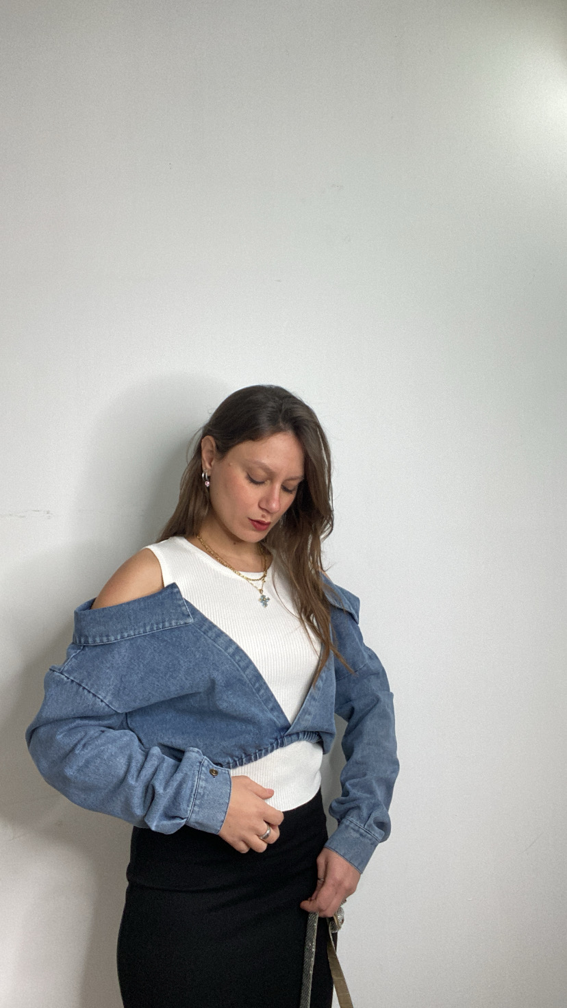 Canotta a costina con maniche in jeans rimovibile 36/44