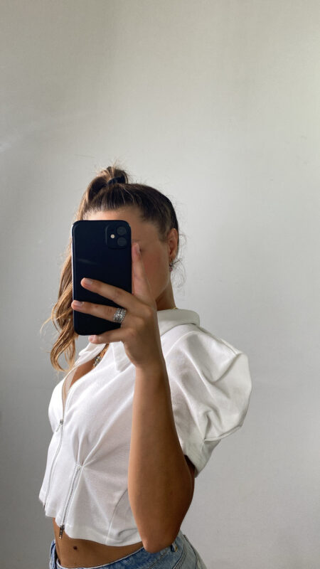 Maglia oversize con dettagli di strappi avanti sul fondo e maniche