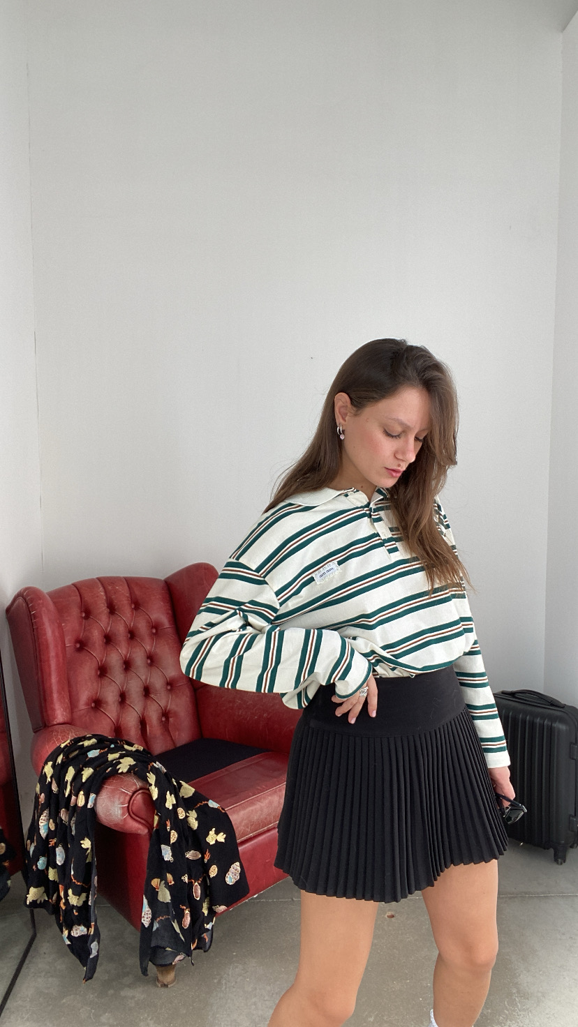 Mini gonna pieghettata in lana a vita alta foderata da shorts all’interno zip laterale invisibile
