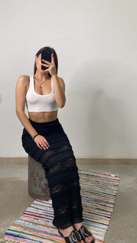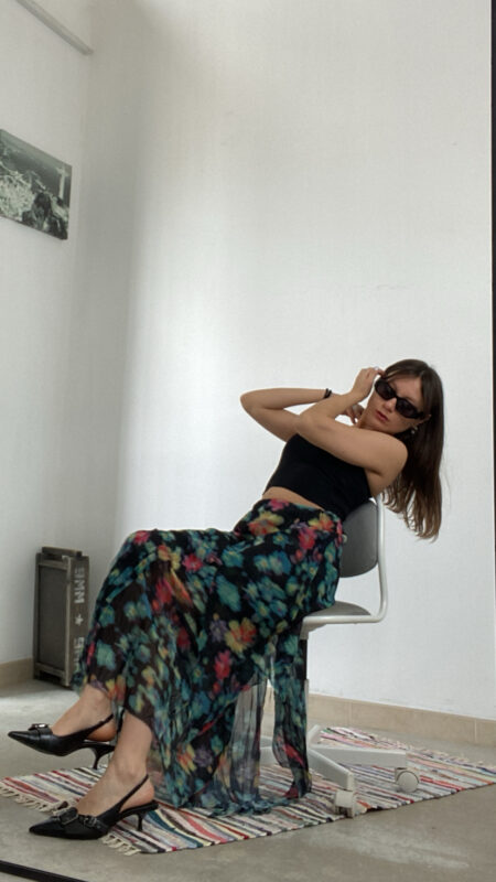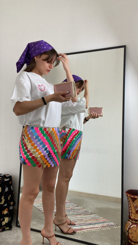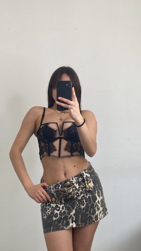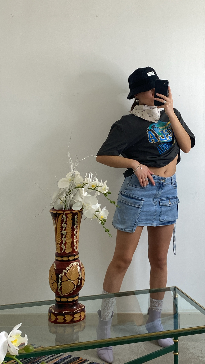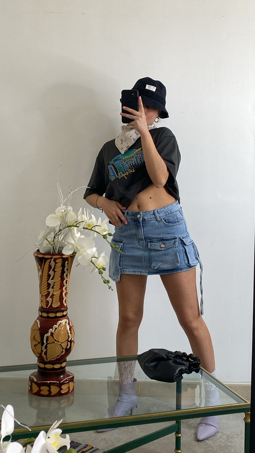 Mini gonna cargo aderente a vita alta lavaggio chiaro rivestita da shorts all’interno
