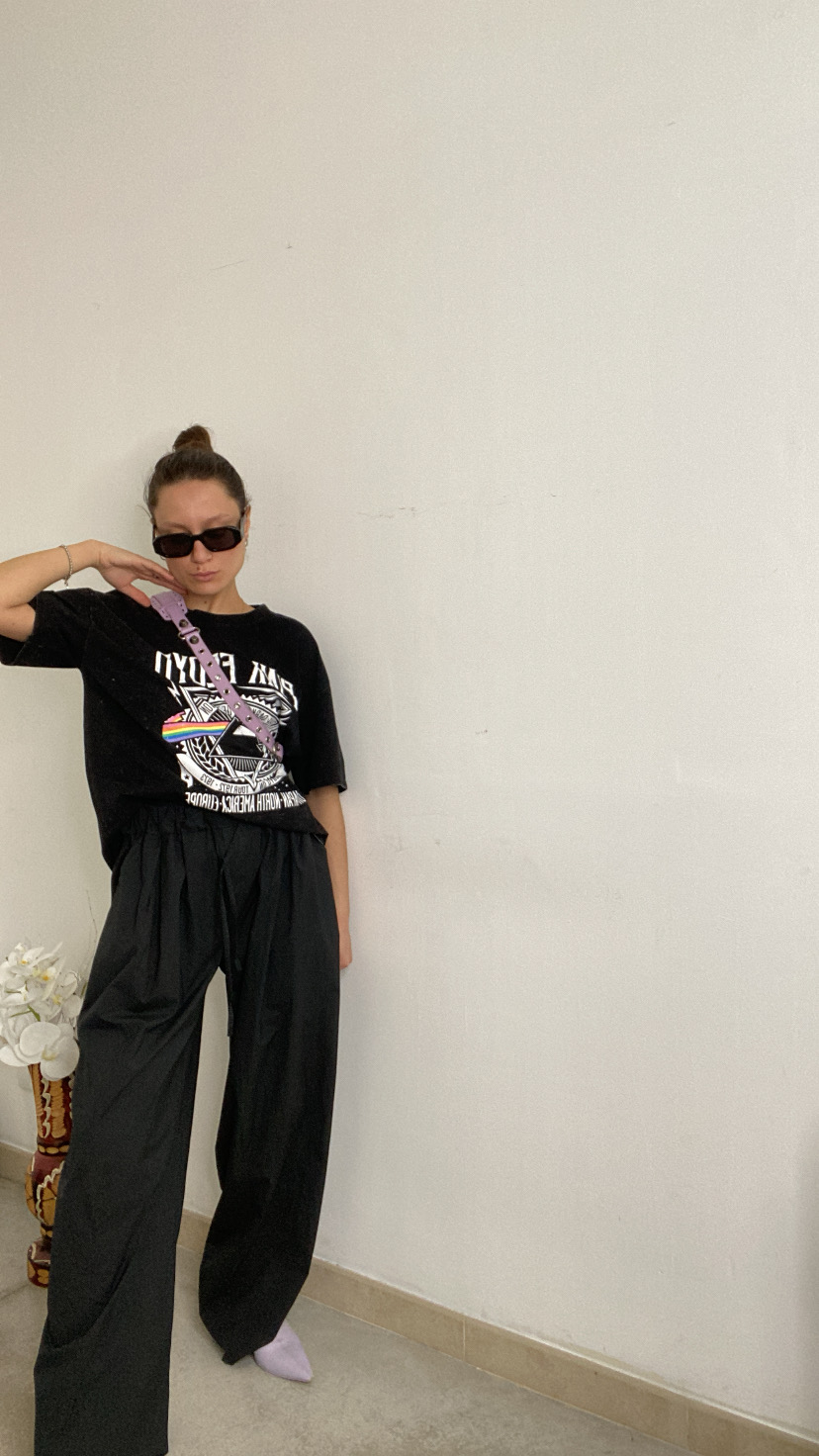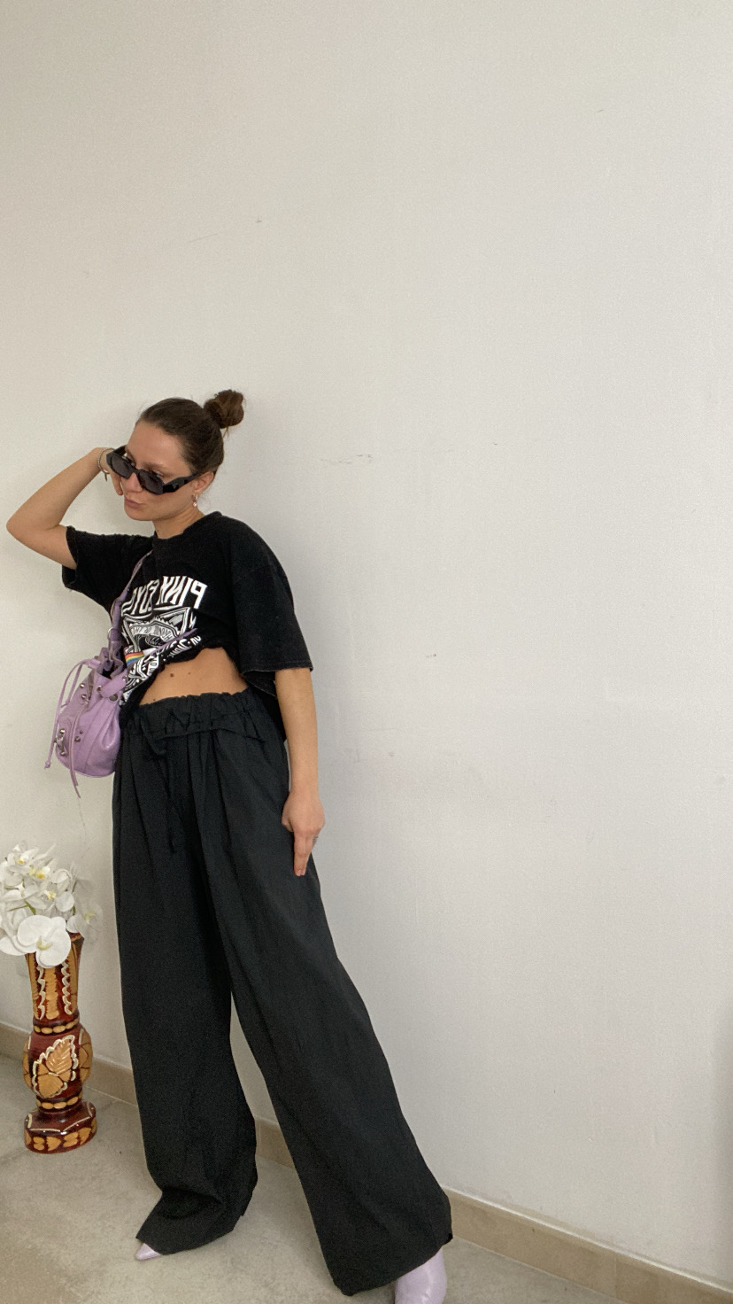 Pantalone in cotone coulisse in vita gamba larga oversize 36/48 italiana