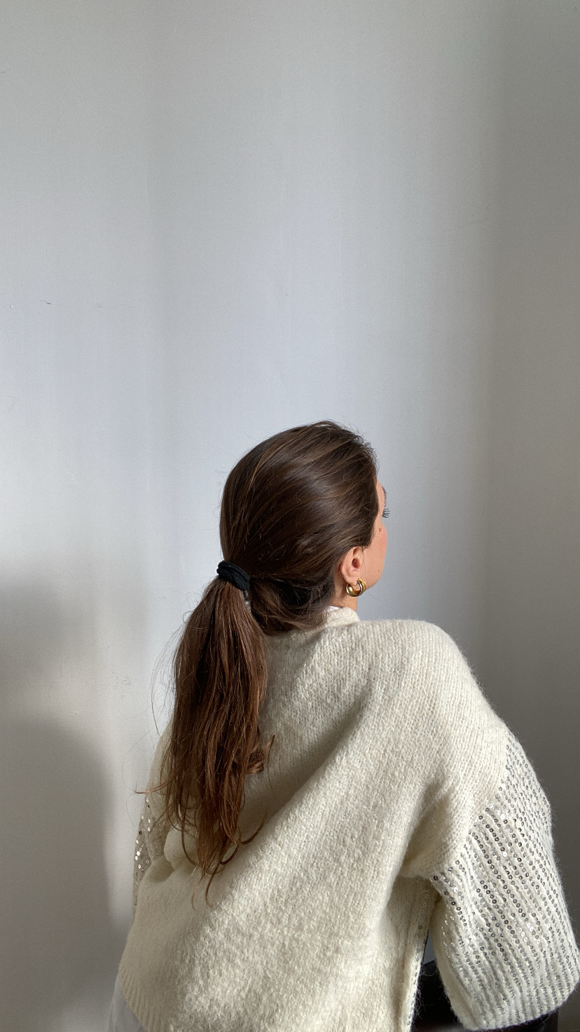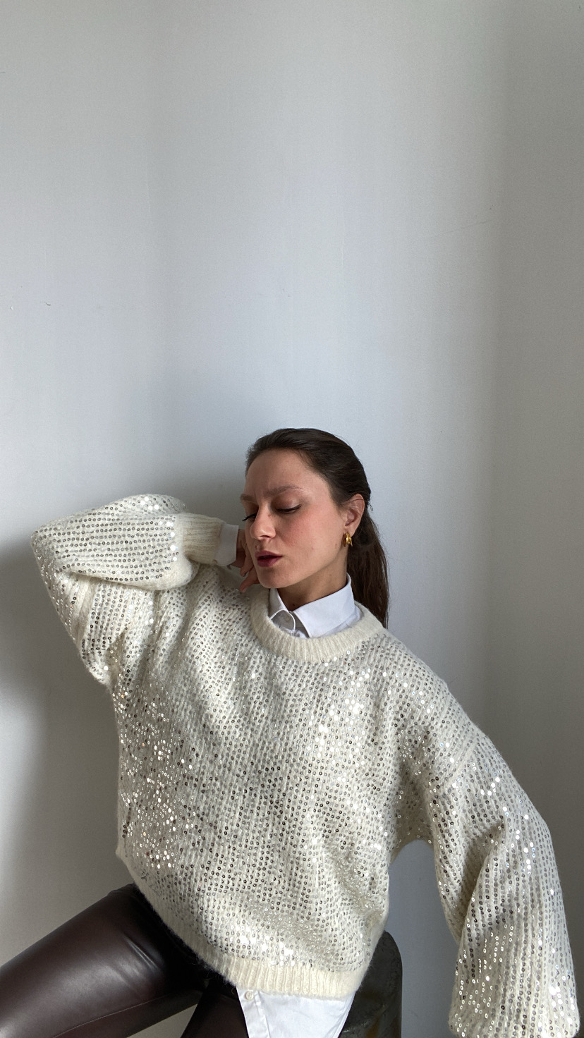 Pull in lana color champagne tempestato di paillettes avanti a alle maniche 36/44 over