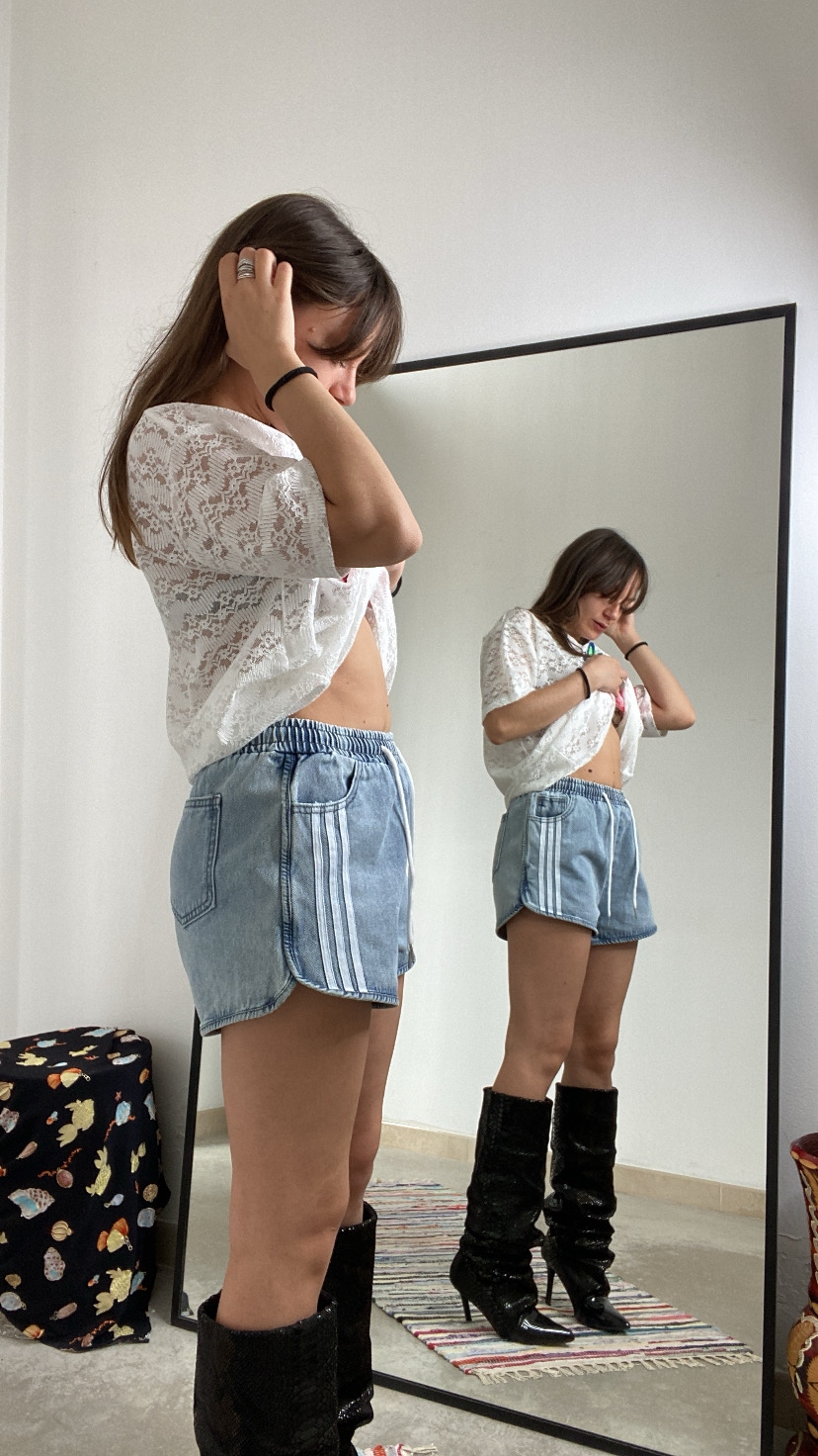 Shorts in jeans con elastico e coulisse in vita