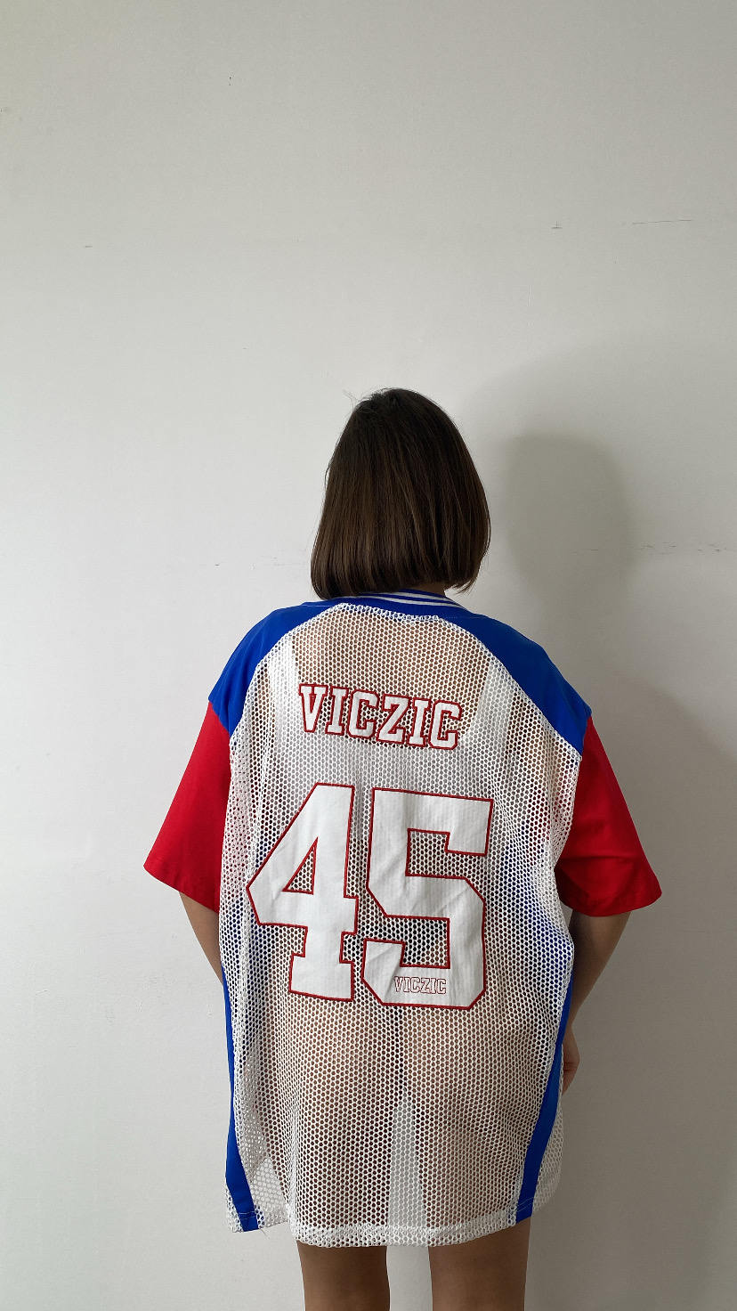 T-shirt rete da pesca bicolore con patch e stampa avanti e retro oversize 36/48 italiana