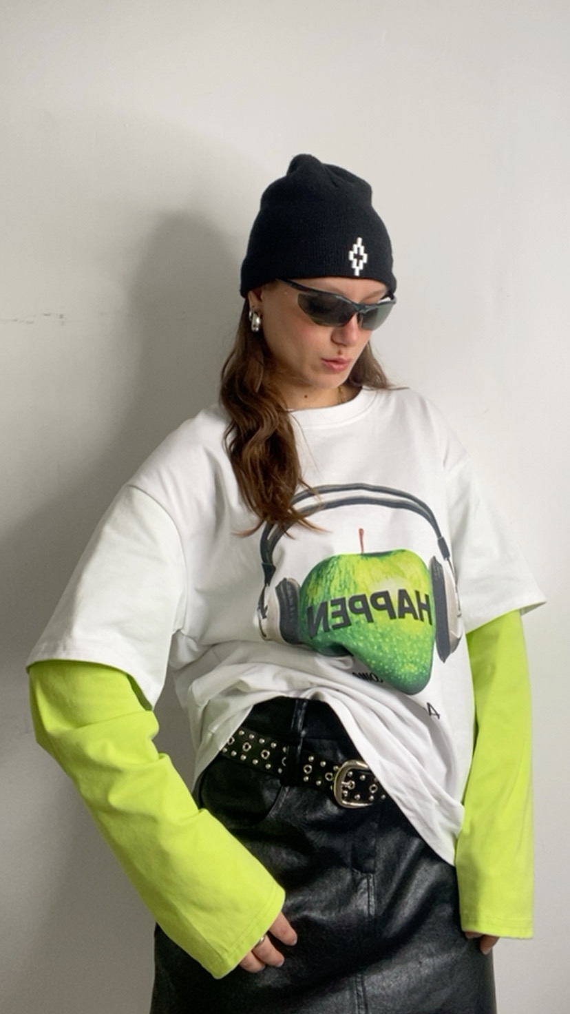 T-shirt stampa avanti con maniche a contrasto oversize 36/46 italiana