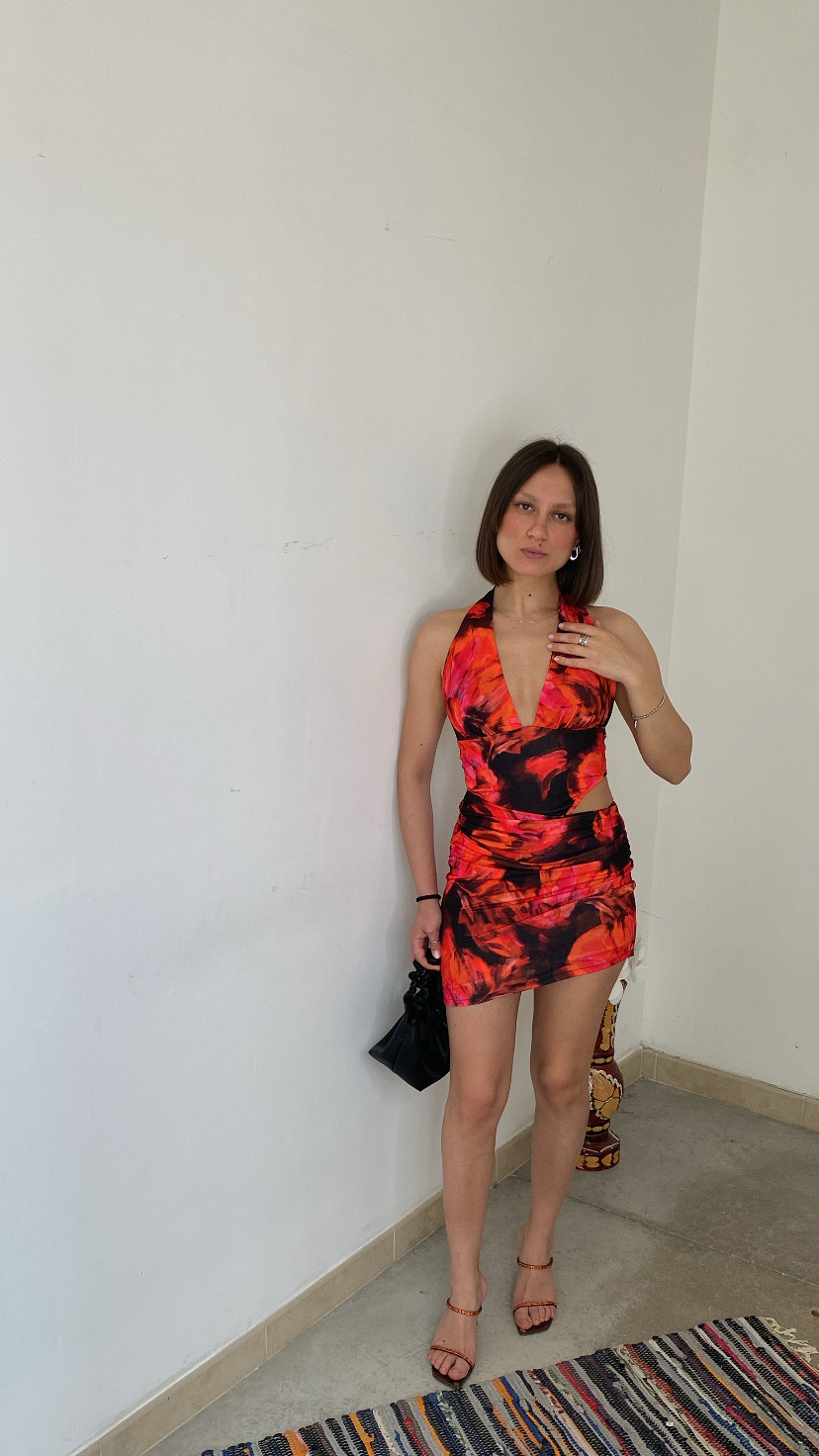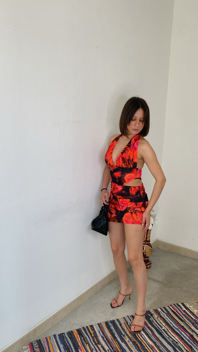 Vestito corto colorato aderente elastico allacciato dietro schiena scoperta cut out laterale 38/42 italiana