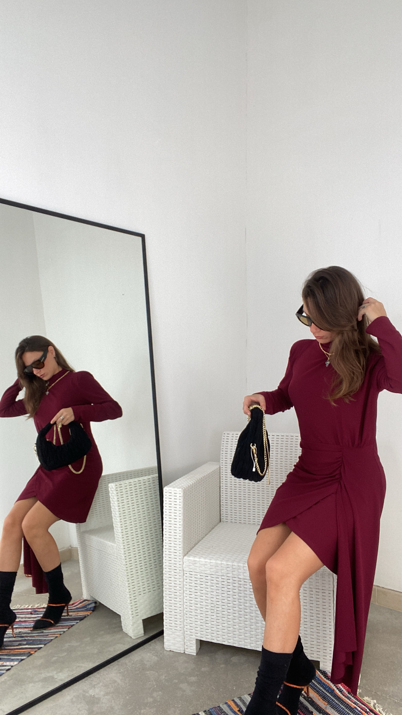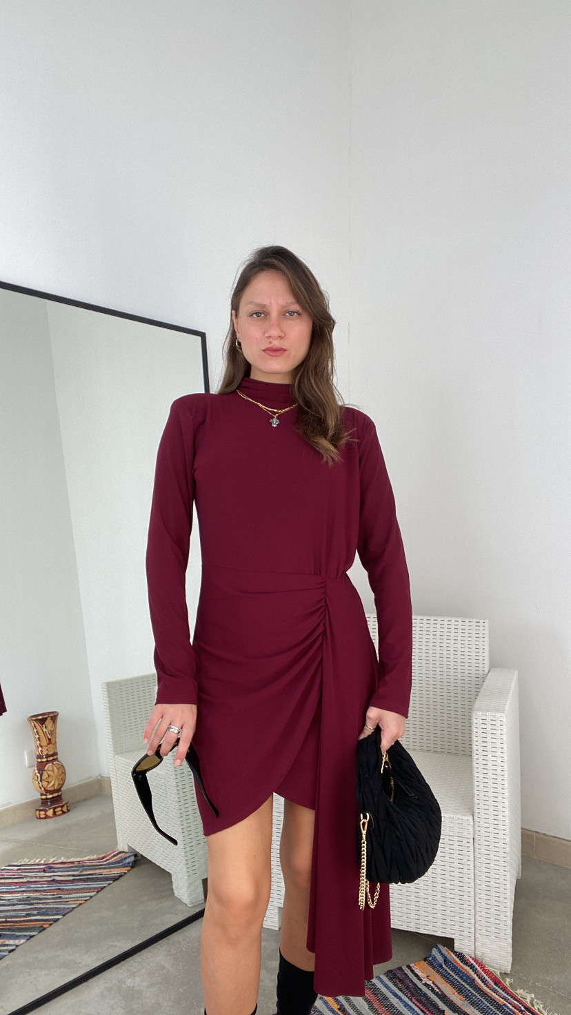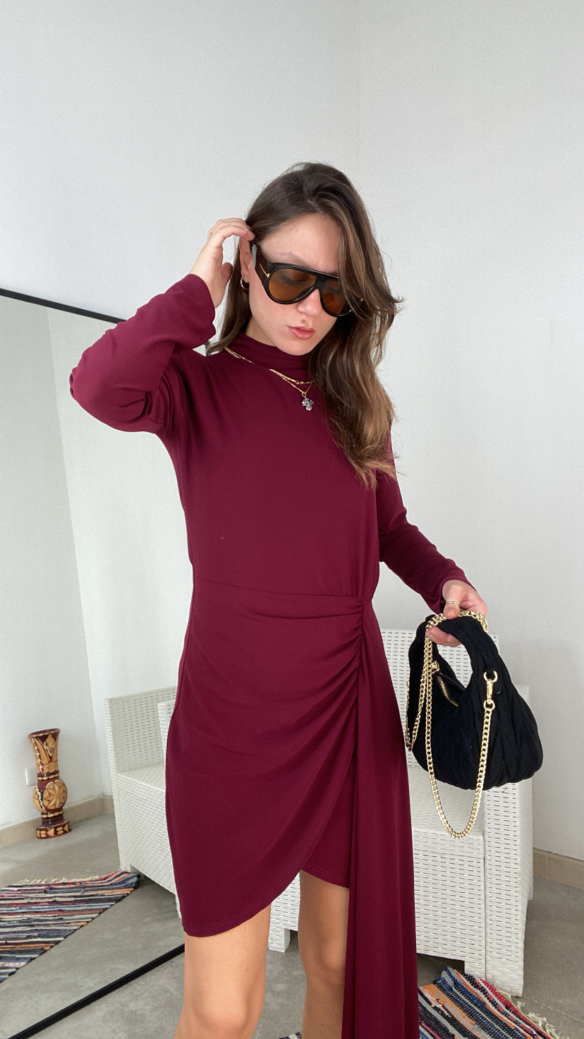 Vestito allineato alla struttura del corpo collo leggermente alto con spalline strascico e drappeggio laterale
